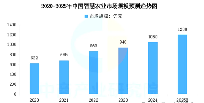 在全球智慧農業市場的快速增長中,中國也扮演著重要角色。中國作為農業大國,對智慧農業技術的需求和應用尤為迫切。政府和企業紛紛加大投入,推動智慧農業技術的研發和應用。【鄉村聞道】認為智慧農業市場規模連年增長,2024年中國智慧農業市場規模超千億元,達到約1050億元,預計2025年將達到1200億元。
